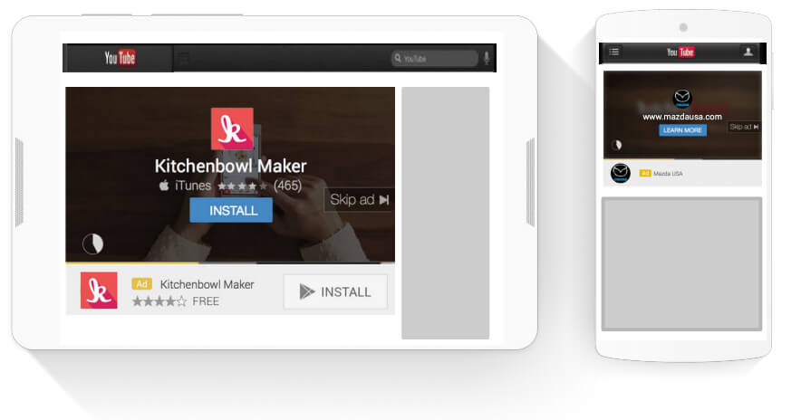 ● 搜索结果旁边以及观看页面、YouTube 首页和其他网站上的高影响力展示位置